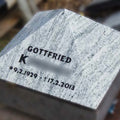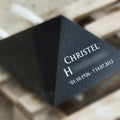 This pyramid is carefully handcrafted and polished to a high gloss. Its balanced shape and fine surface lend elegance to the tombstone. A personalized engraving with a name and dates of birth and death is included in the price; additional symbols or ornaments can be added optionally. The smooth surface allows water to drain away, making it easy to maintain and ensuring lasting beauty. You will then be guided through the configurator. If you need a custom size, please contact us!